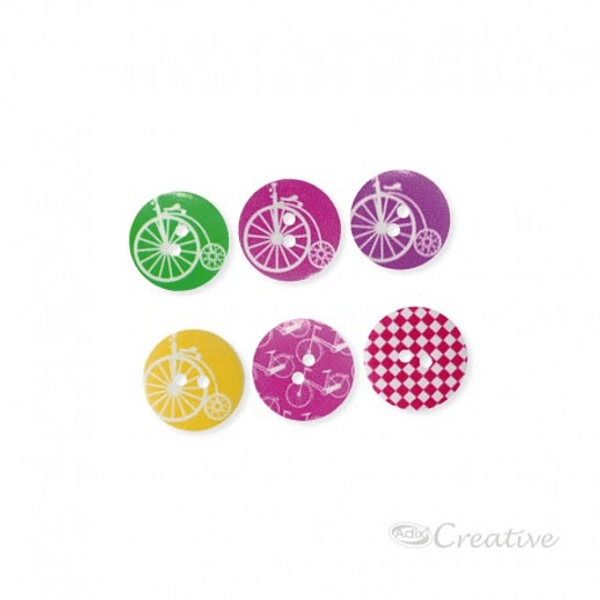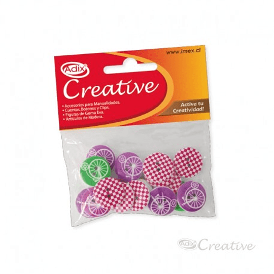 Set de botones de madera pintada en distintos diseños. Son 20 unidades aprox. de 21 mm. Ideal para darle un toque diferente a tus manualidades y/o decoración