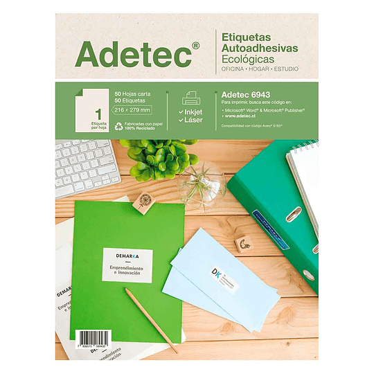 ETIQUETAS INKJET/LASER ECOLÓGICA 216×279 MM 50 HOJAS. Elaboradas con papel 100% reciclado, cada vez que escojas imprimir en estas etiquetas,