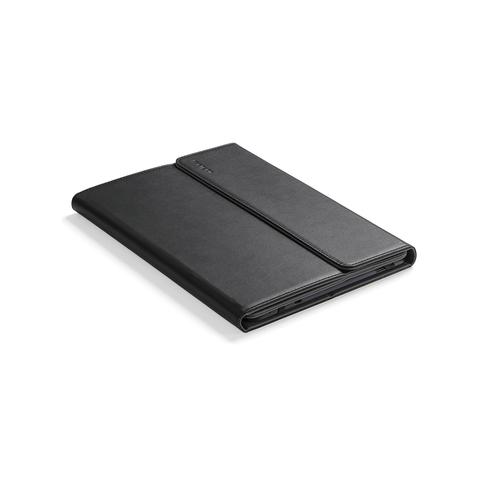 La funda flexible y ligera ofrece una protección segura para el dispositivo gracias a que incorpora una base con cuatro esquinas de silicona con unas bandas de sujeción que se quitan y se ponen en las esquinas de la tablet. El forro interior es de tejido suave que impide que la pantalla se raye o se estropee. Además, cuenta con un cierre magnético que mantiene la funda bien cerrada. La tapa se puede abrir o plegar en un ángulo alto o bajo, para que pueda seleccionar la posición ideal para ver vídeos, redactar mensajes de correo electrónico o navegar por Internet.