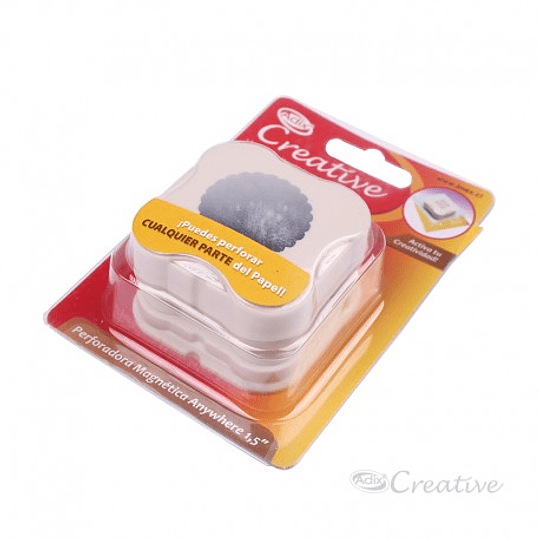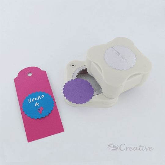 Perforadora tipo anywhere con diseño de círculo ondulado, tamaño 1,5″ (38 mm aprox). Ideal para trabajos manuales y decoración. Perfora en cualquier lugar del papel de hasta 200 g. aproximadamente. Medida de 5,8 x 3,8 cm aproximadamente. Producto no Apto para menores de 3 años.