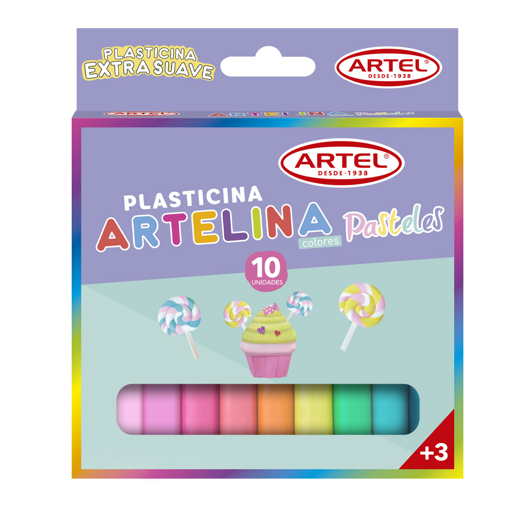 - Estuche de plasticina pastel de 10 unidades 180g. Fórmula extra suvae.