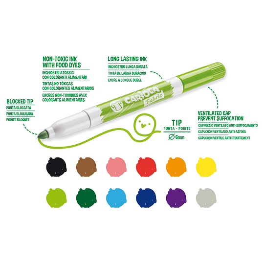 - Pack de 12 rotuladores FABRIC para tejidos• Punta fina Ø 6 mm